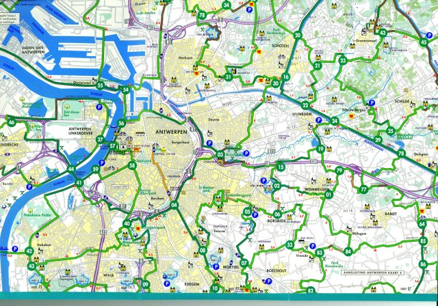 - Radwege-Knotenpunkt-Karten (Region: Antwerpen, Gent, Brügge, Scheldeland, Leiestreek)