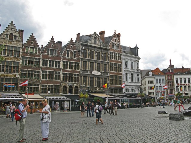 Der Grote Markt wird eingefasst durch hohe Zunft- und Gildehäuser aus dem 16. Jahrhundert. Nicht viel jünger ist das Rathaus an der Kopfseite. Mitten auf dem Platz steht der Brabobrunnen zu Ehren des römischen Legionärs, der die Schiffer von der Gewalt eines Riesen befreit haben und damit zur Stadtgründung beigetragen haben soll.