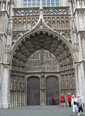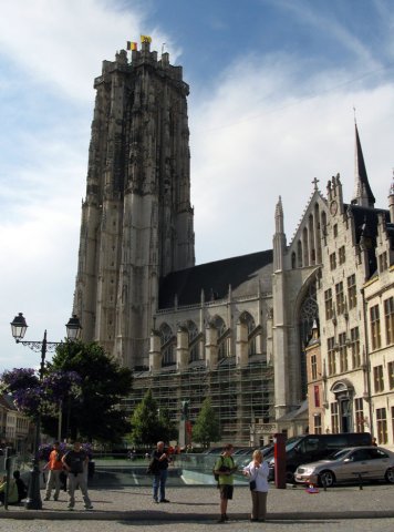 Gut zu sehen mit ihrem 122 m hohen Turm ist die Liebfrauen-Kathedrale. In ihr sind drei Werke von Rubens zu sehen. Das Wohnhaus von Rubens aus 1610 ist übrigens nicht weit entfernt und kann besichtigt werden. Zu ihm gelangt man über die Prachtstraßen Meir und De Keyserlei aus der Gründerzeit; viel zu sehen und zu bewundern für uns Auswärtige. Die Antwerpener nehmen es gelassener und kaufen einfach nur ein.